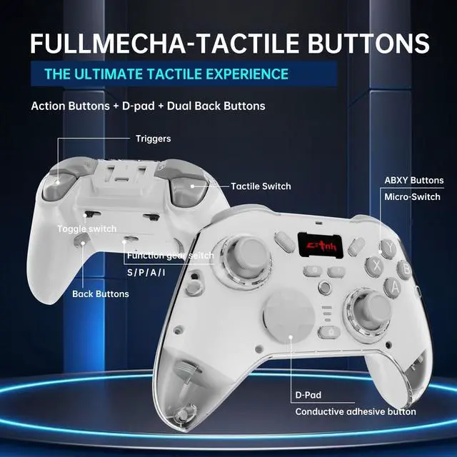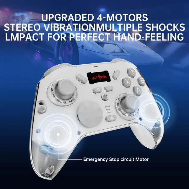 Stunning Translucent Magnetic Shell DesignShowcase the inner workings of your controller with a unique, see-through design. The modular magnetic faceplates allow for easy customization and future personalization, letting your gear reflect your style.The wireless pc gaming controller built-in 6-axis gyro sensor has dual motor vibration & precision-tuned analog sticks deliver immersive feedback.