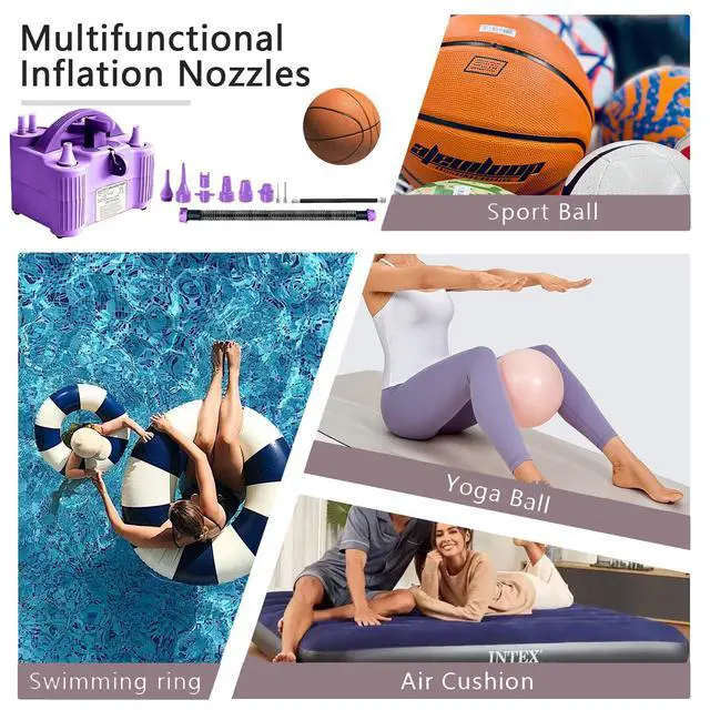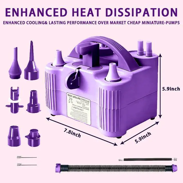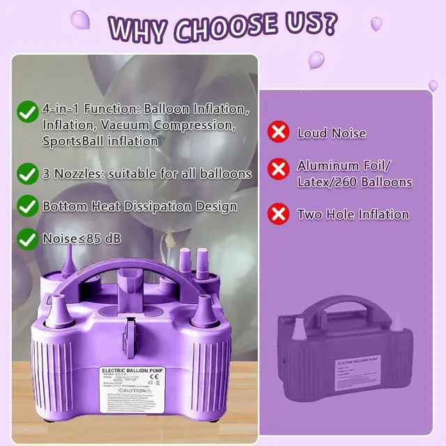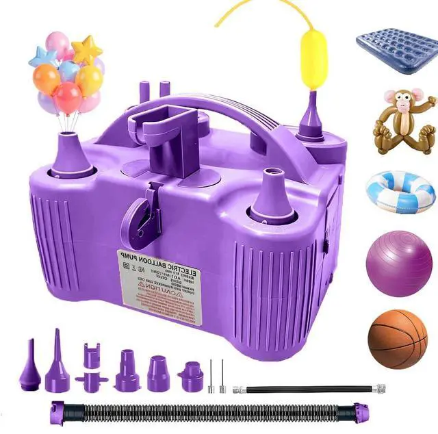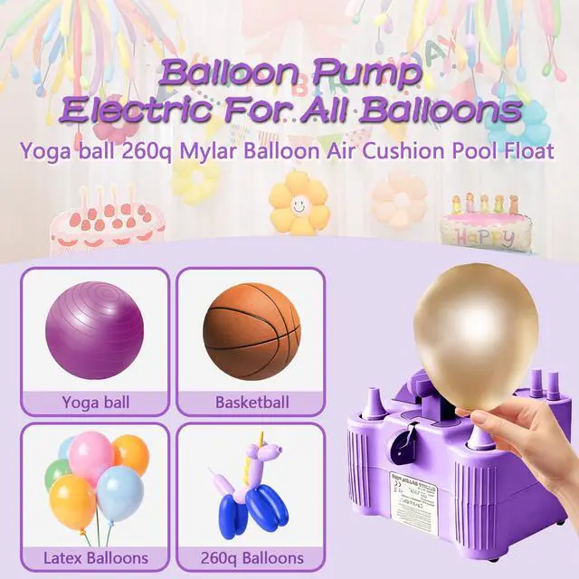 4-in-1 Electric Balloon Pump for All Balloons, Inflatables, and Sports Balls, Portable High Power Triple Inflating Ports for Latex Foil 260q Mylar BalloonPurple