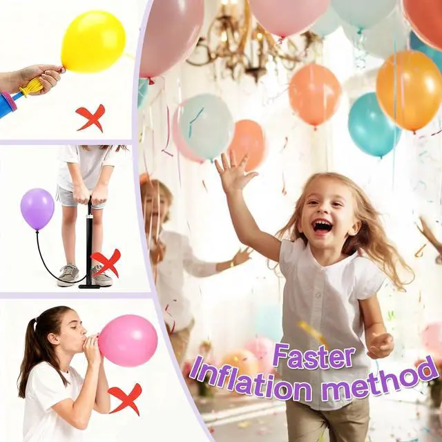 Portable High Power Triple Inflating:Say goodbye to the tedious and tiring task of inflating by hand. With a strong and efficient airflow, the air pump inflates 3 balloons in 2-3s, deflates vacuum bags in 30s, inflates pool toys in 1 min, and air mattresses in just 3 mins.