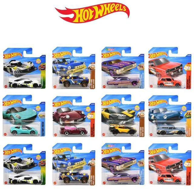 This pack of 12 Hot Wheels vehicles offers classic die-cast fun in a surprise assortment. Each pack includes 12 randomly selected 1:64 scale cars. Vehicle styles vary for an exciting unboxing experience. Signature Hot Wheels detailing and bold designs enhance collectibility. Ideal for collectors kids and racing enthusiasts.