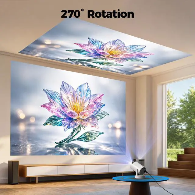 Ultra-Portable & Flexible Design Weighing only 1.4 lbs, the HOTPEAK PR08 is designed to go wherever you do. Its 270° rotating base lets you project onto walls, floors, or ceilings with ease. Set up your big-screen entertainment in seconds, anywhere you have a power outlet (battery not included). Enjoy screen sizes from 35 to 130ideal for movie nights, gaming, video calls, or kids' activities.