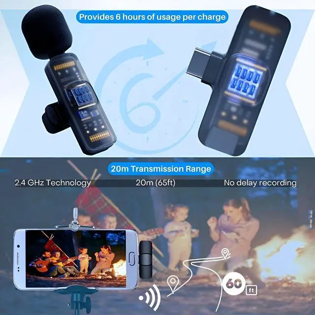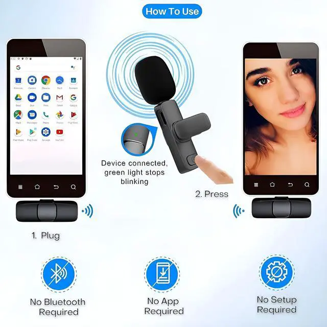 Designed for YouTube, TikTok, Facebook live, Interview, Podcast, Vlog, Live Streaming, and it's a clip on wireless microphone for android.