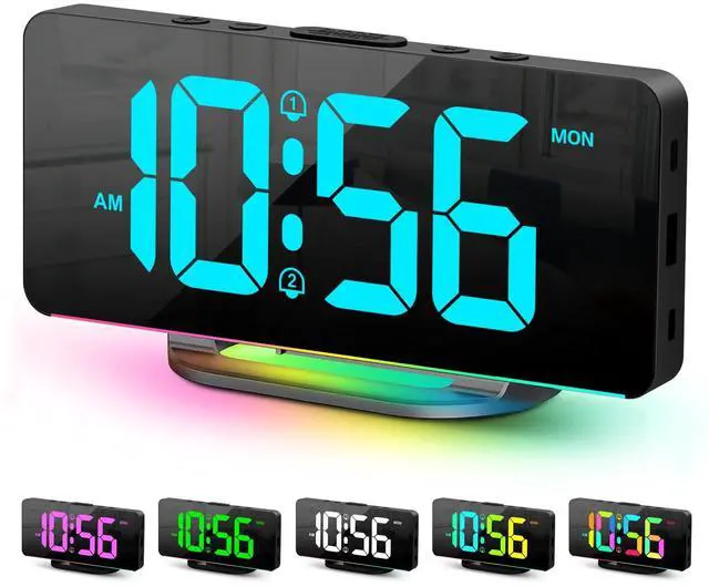 - The bottom of the digital alarm clock comes with 10 different color ambient lights, giving you a warm and romantic night.
