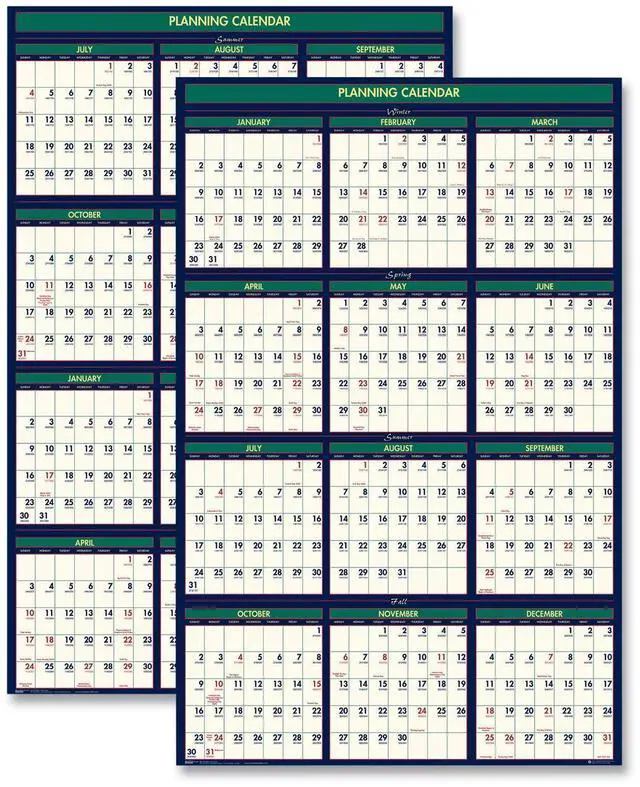 Four Seasons Business/Academic Recycled Wall Calendar 24 x 37 12-Month July-June: 2025-2026 12-Month Jan to Dec: 2026 390