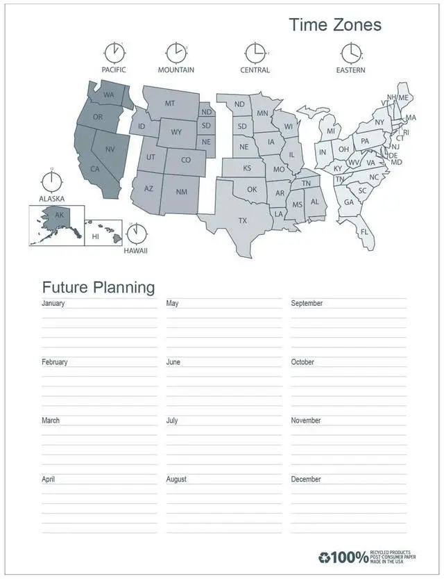• Page Format: One Month per Two-Page Spread