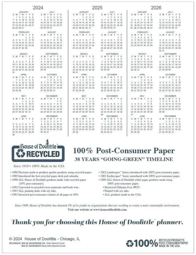 House of Doolittle Recycled Ruled Monthly Planner 14-Month Dec.-Jan. 11 x 8.5 Black 2026