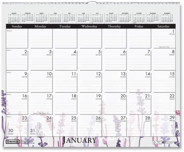 Recycled Wild Flower Wall Calendar Wild Flowers Artwork 15 x 12 White/Multicolor Sheets 12-Month Jan to Dec: 2026 3469
