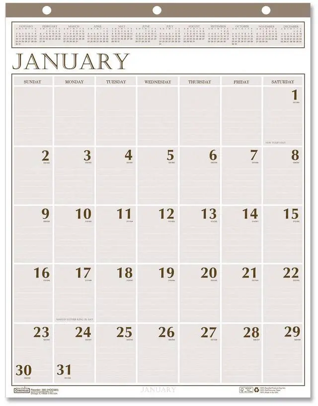 Large Print Recycled Monthly Wall Calendar 20 x 26 Beige Sheets 12-Month Jan to Dec: 2026 380