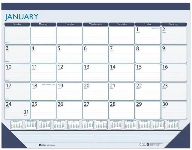 House of Doolittle 100% Recycled Contempo Desk Pad Calendar 22x17 Blue 2026