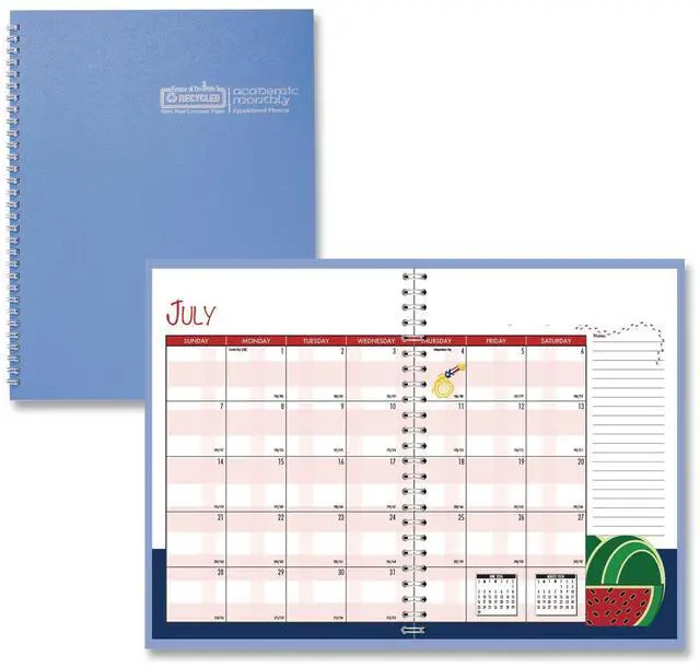 Recycled Academic Year Illustrated Monthly Planner 10 x 7 Light Blue Cover 12-Month July to June: 2025 to 2026 239508