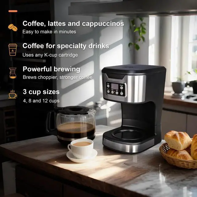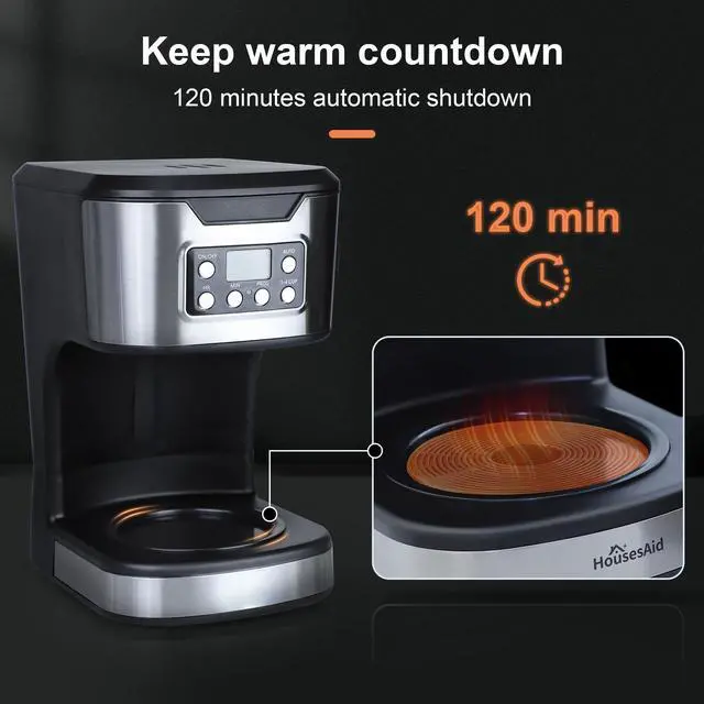 • [12-cup large capacity design]You can brew up to 12 cups (1.5 liters) of coffee at a time, meeting the needs of family gatherings or small offices. Whether it's a busy morning or a leisurely afternoon tea time, this large-capacity coffee machine can easily handle it, ensuring that every coffee lover can enjoy fresh coffee.