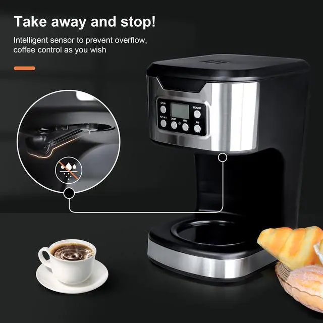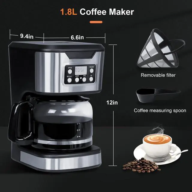 Programmable Coffee Maker 12 Cup Brew & Drip coffee machine, Fully Automatic, 1-4 Cup Setting, Stainless Steel, Keep- Warm Function, Household, Home and Office, Black