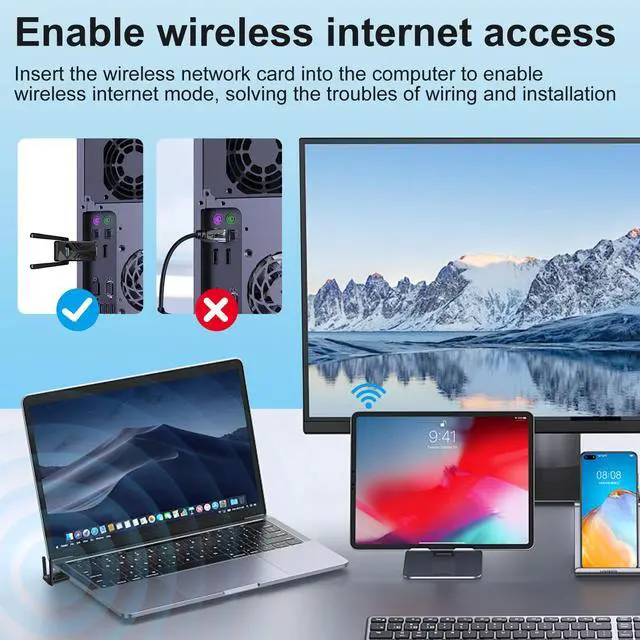 Two 3dBi High Gain Wifi Antennas The high gain antennas of the desktop wifi adapter greatly enhance the reception and transmission of WiFi signal strength. Our desktop computer wifi dongle is equipped with dual high gain pc wifi antennas to ensure accurate capture of WiFi signals, providing a stable and powerful connection even at a longer distance, perfect for overcoming poor signal issues in the bedroom. This computer wifi adapter, wifi card and usb wifi antenna extends your coverage