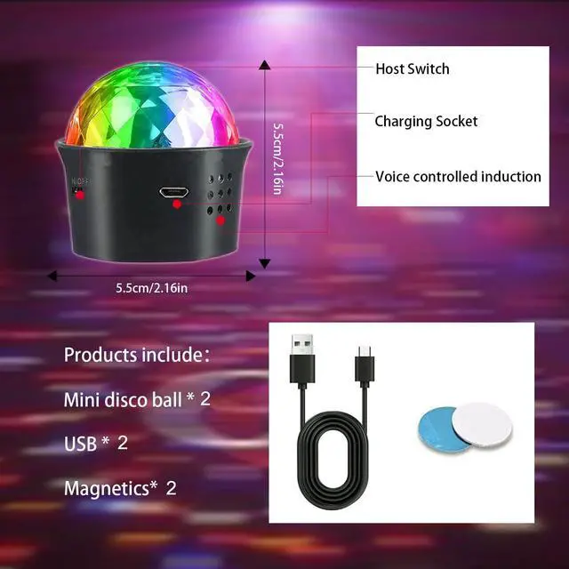 Portable and Easy-to-UseFeaturing a magnetic paste at the base, this disco party light can be effortlessly attached to any metal surface, making it convenient to use with just a simple switch press. Weighing only 0.06Ib and compact in size (2.08*2.08*2.08in), this disco ball is small, portable, and aesthetically pleasing, allowing you to carry it in your bag, backpack, or install it in your car for instant party lighting wherever you go.