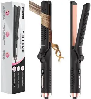 Hoygi Hair Straightener 1 Inch Flat Iron and Curler 2 in 1 Titanium Ceramic Ionic Dual Voltage Straightener with Heat-Resistant Silicone, for Less Frizz, Shinier & Smoother