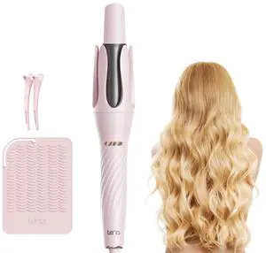 Auto Hair Curler, Automatic Curling Iron with 4 Temperature & 3 Timer, Automatic Shut-Off, Anti-Scald, Anti-Tangle Rotating Curling Wand for Hair Styling, Pink