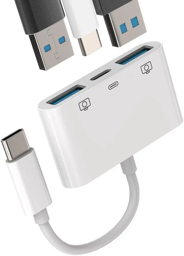 USB-C to Dual USB A Adapter(3in1)Type-C Charge Cable Accessorie Thunderbolt Charging Port Converter Keyboard Mouse U Disk USB Card Reader OTG Dongle Compatible for Samsung LG Pixel Macbook Pro