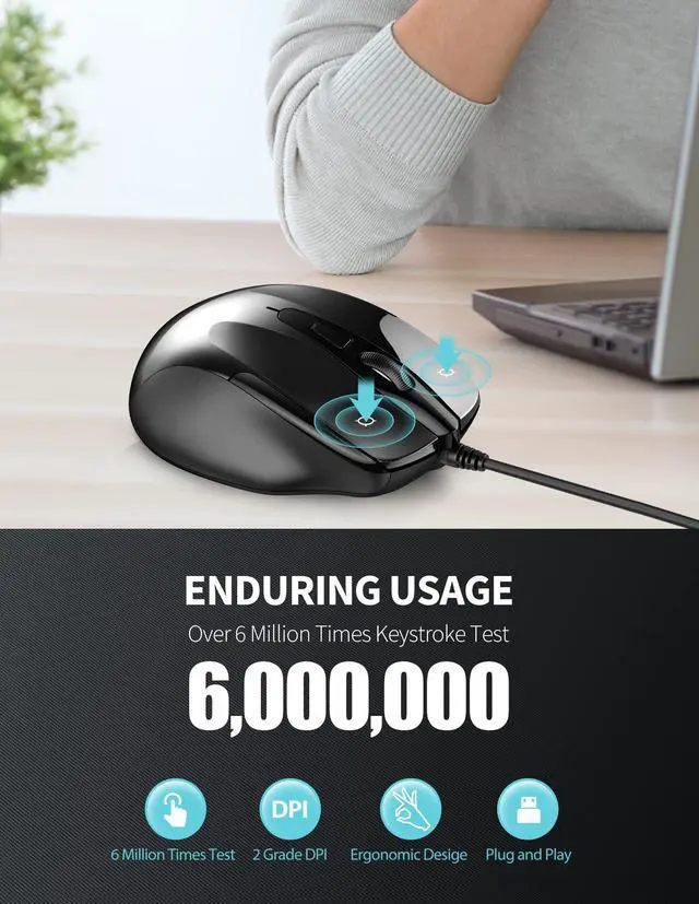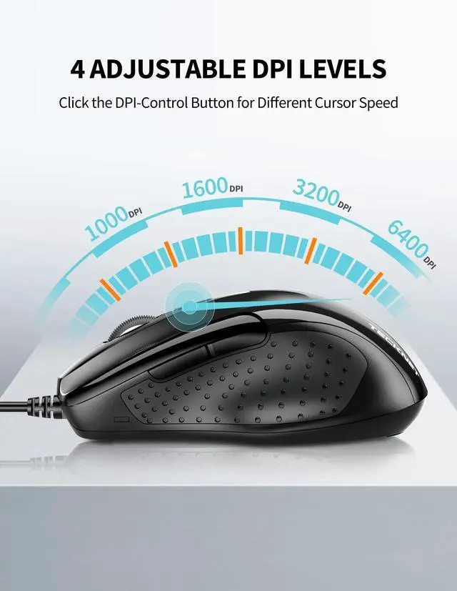 4-level DPI (1000/1600/3200/6400); Suitable for gaming or office use