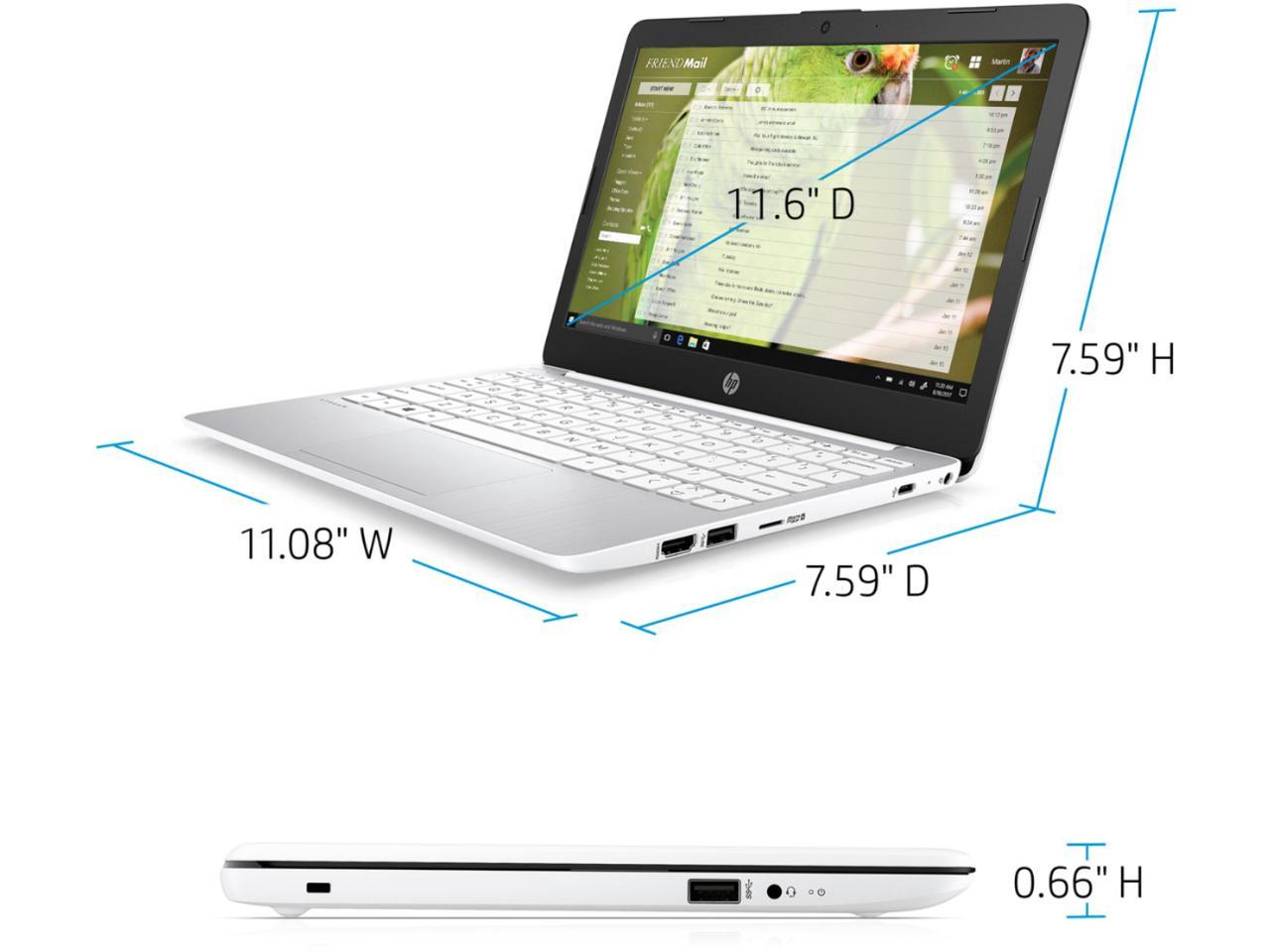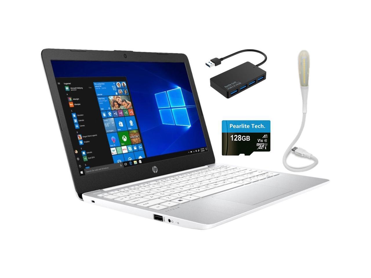 HP Stream 11.6" HD Laptop, Intel Celeron N4000, 4GB RAM 64GB eMMC, Intel UHD Graphics 600, Windows10 S, Diamond White, Bundle with Pearlite Tech 128GB Micro SD Card & 4 Port USB Hub & LED Light