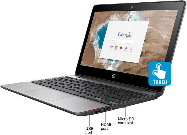 . . The HP X7T65UA#ABA is a chromebook which comes with a 11.6" HD IPS Touch display that makes each image and video appear sharp and crisp. The laptop has Intel Celeron N3060 Dual-Core 1.6 GHz processor with Intel HD