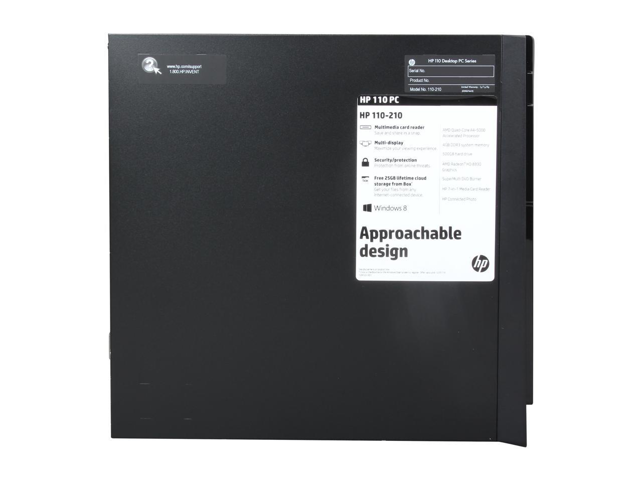 HP Desktop PC 110-210 (F3D15AA#ABA) AMD A4-5000 4GB DDR3 500GB HDD AMD Radeon HD 8330 Windows 8.1 64-Bit