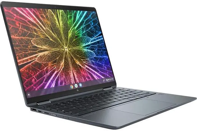 The HP Elite Dragonfly Chromebook is a versatile convertible laptop designed for business professionals. It features an Intel Core i5 12th Gen processor, 16GB of LPDDR4 memory, and a 256GB PCIe NVMe SSD for powerful performance and efficient storage. The 13.5 -inch touch screen display offers a maximum resolution of 2256 x 1504 pixels, while the integrated Intel Iris Xe Graphics provides quality visuals. With a sleek slate blue design, backlit keyboard, and long 8-hour battery life, it's a stylish and functional laptop for on-the-go professionals.