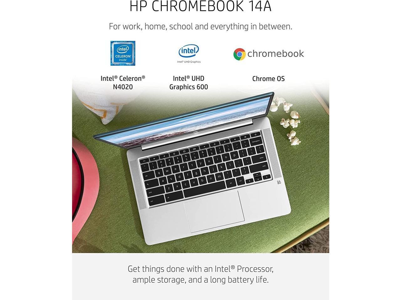 HP Chromebook 14a-na0120nr 14" HD Laptop Intel Celeron N4020 1.10GHz up to 2.80GHz Dual-core, Intel UHD Graphics 600 4GB LPDDR4-2400 RAM 32GB eMMC Chrome OS