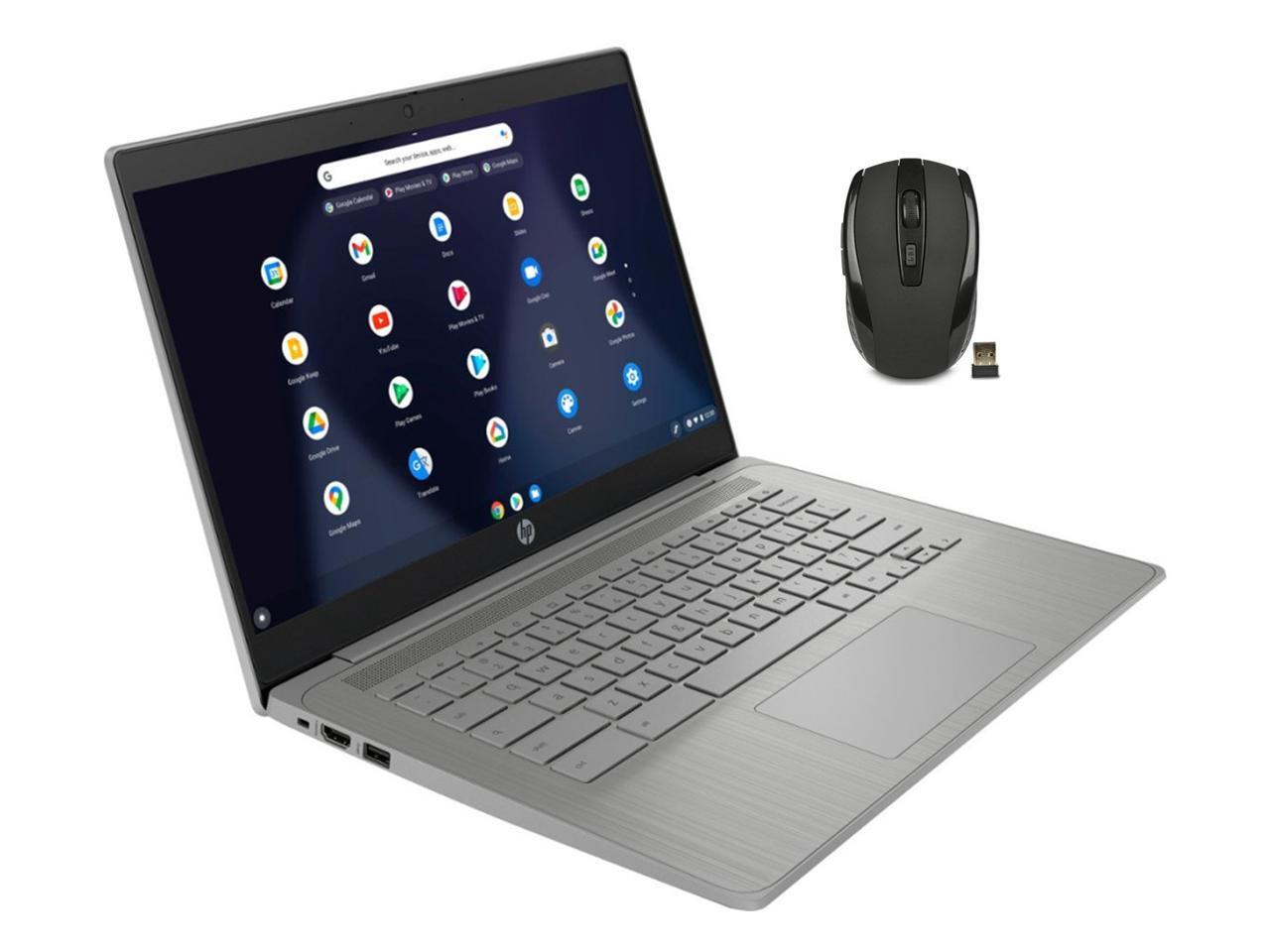 HP Chromebook 14" HD Laptop | Intel Celeron N4120 | 4GB DDR4 | 64GB eMMC | Intel UHD Graphics 600 | Chrome OS | Grey | with Wireless Mouse Bundle