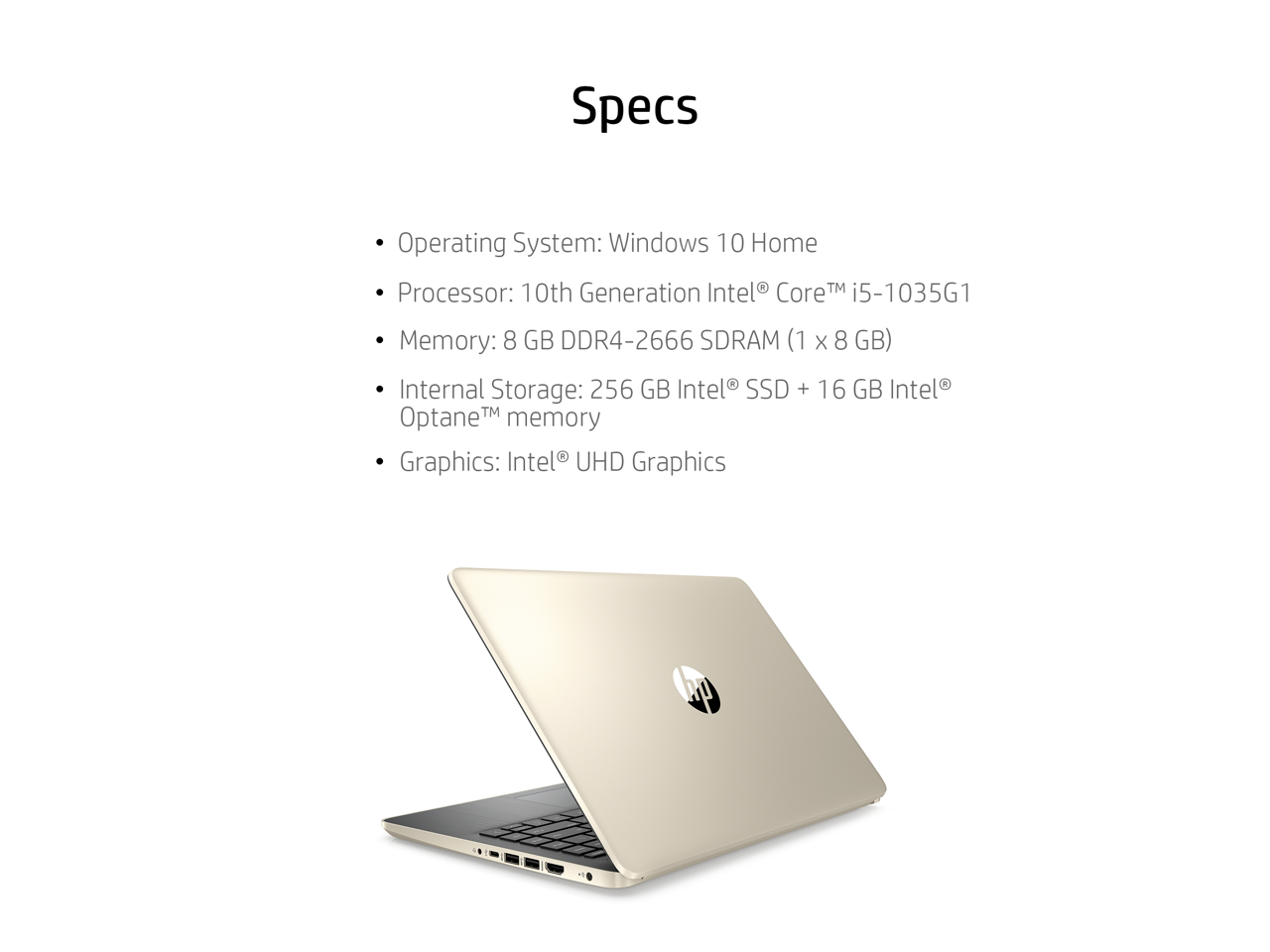 Hp 14 Laptop, Intel 10th Gen Core i5-1035G1, 8 GB SDRAM, 256GB SSD+16GB Optane, 14-dq1040wm