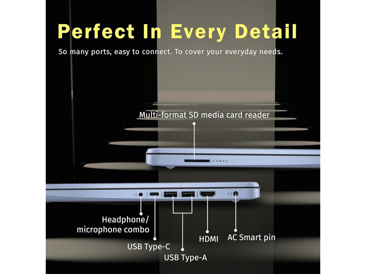 - Windows 11 S&Ports : 3.24 lbs.1x USB Type-C, 2x USB Type-A, 1x Headphone/microphone combo, 1x Media card reader, 1x HDMI 1.4b, 1x AC Smart pin. Wi-Fi 6, Bluetooth, Webcam.