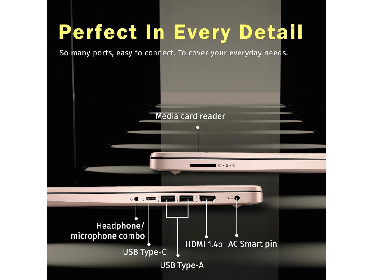 Windows 11 S&Ports : 3.24 lbs.1x USB Type-C, 2x USB Type-A, 1x Headphone/microphone combo, 1x Media card reader, 1x HDMI 1.4b, 1x AC Smart pin. Wi-Fi 6, Bluetooth, Webcam.