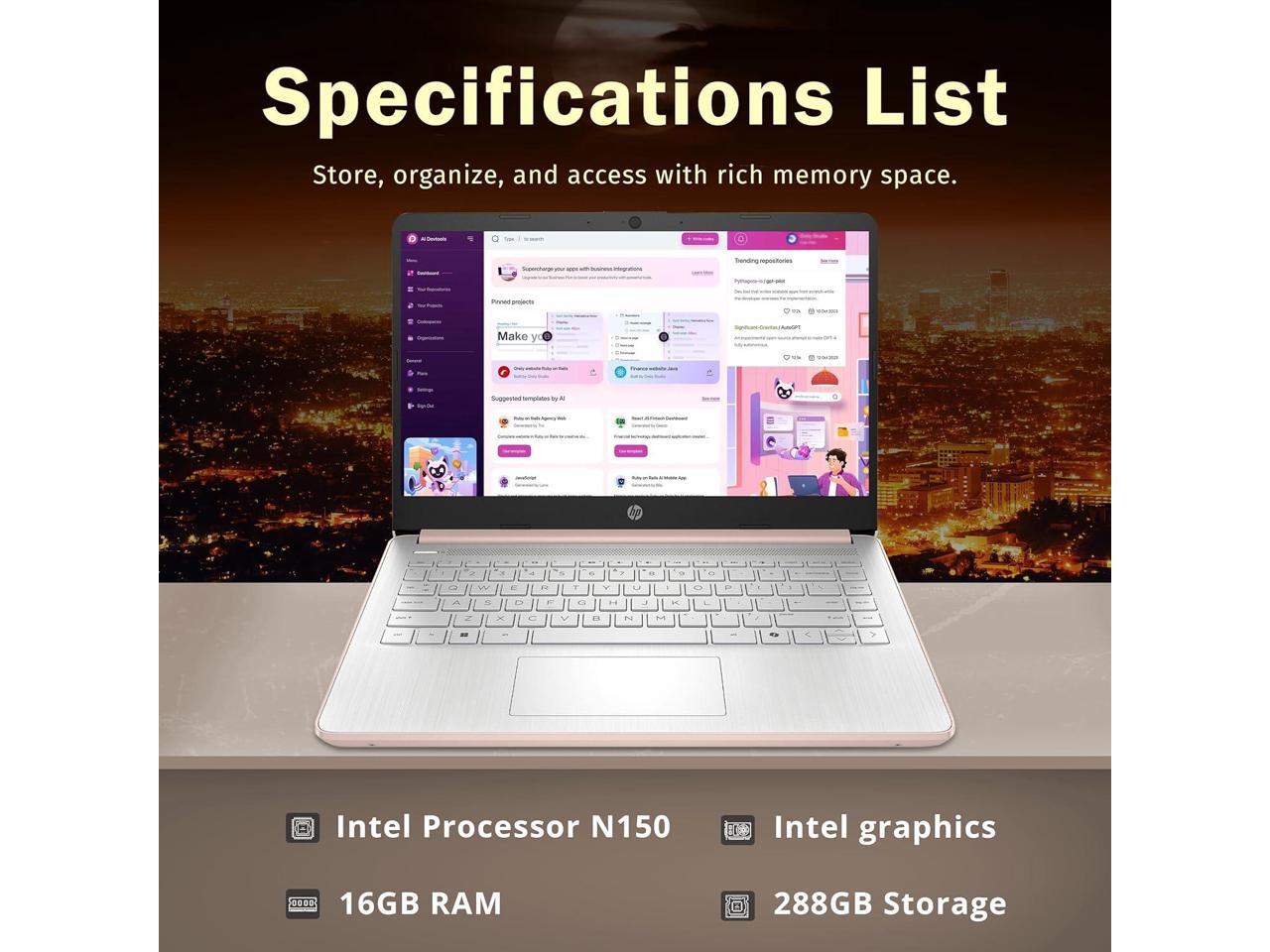 HP Stream 14" HD Anti-Glare Laptop, Intel Processor N150, 16GB RAM, 288GB Storage (128GB SSD+160GB Docking Station Set),1 Year Office 365, Webcam, Wi-Fi 6, Long Battery Life, Copilot, Win 11 S, Gold