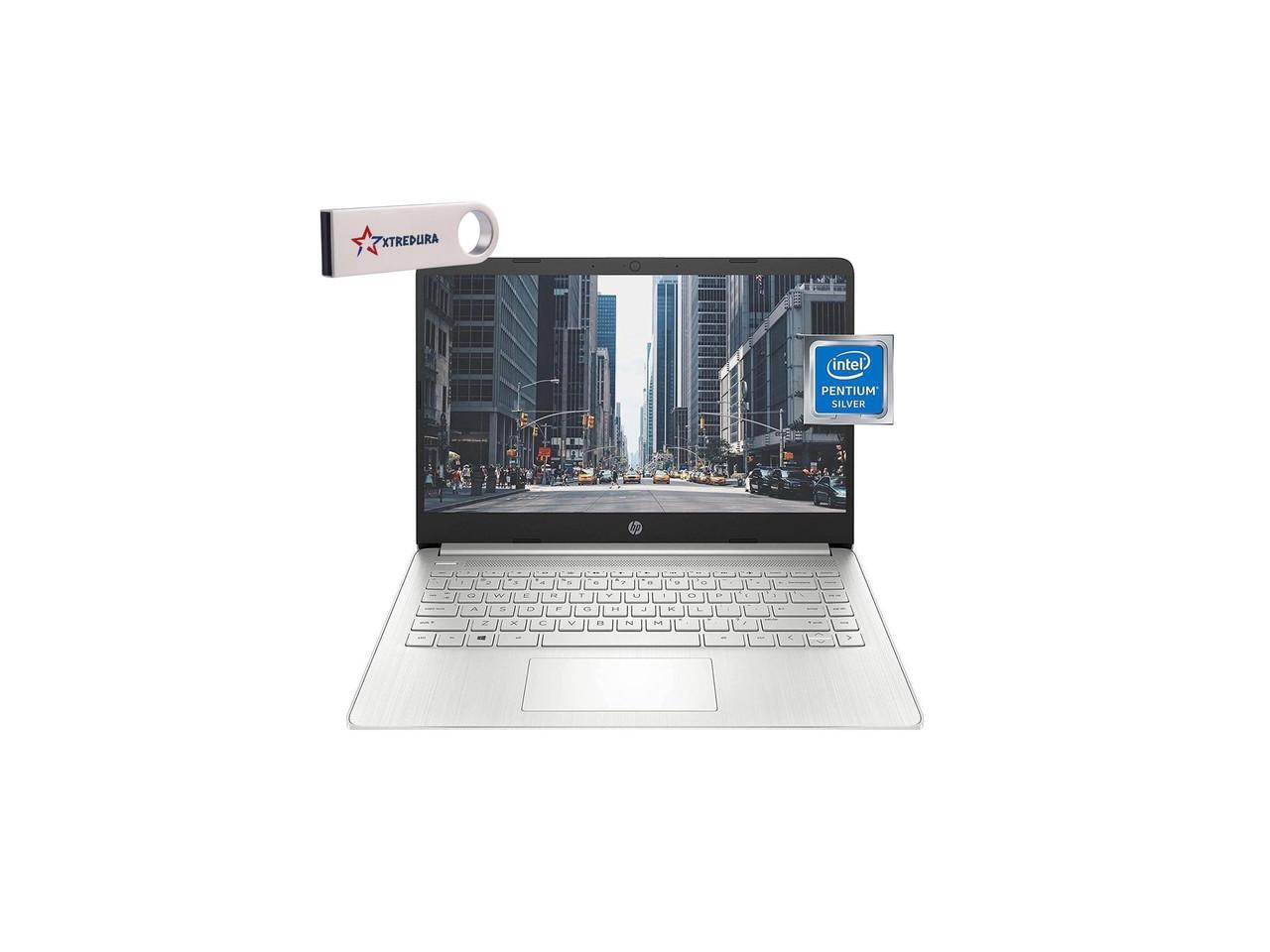HP 14 Inch HD Student&Business Laptop, Intel Pentium N5030,8GB,128GB SSD, Intel UHD Graphics, Wifi, Bluetooth, Windows 11 Home, Silver/XTREDURA FLASH DRIVE