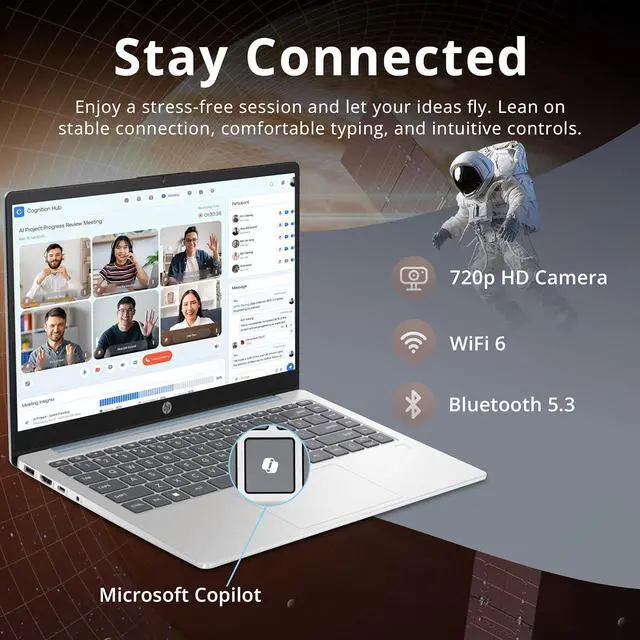 720p HD Camera: Stay clearly connected with a built-in 720p HD webcam, delivering sharp video quality for online meetings, virtual classes, and video calls.