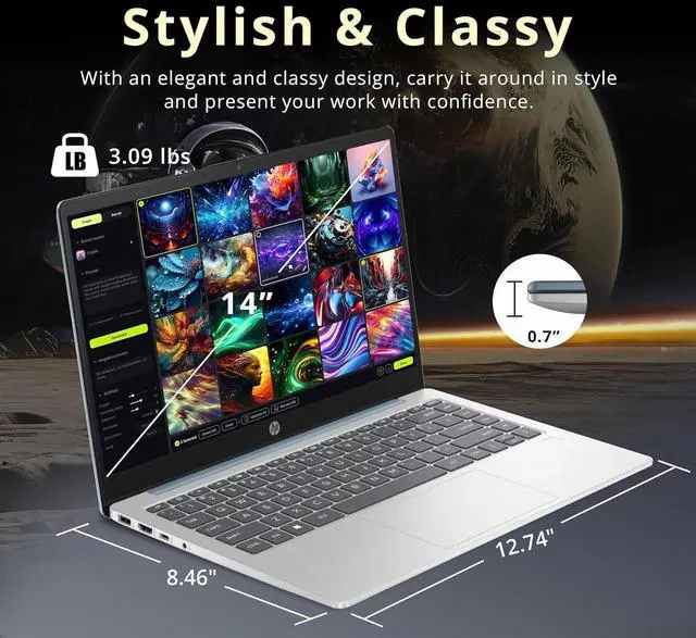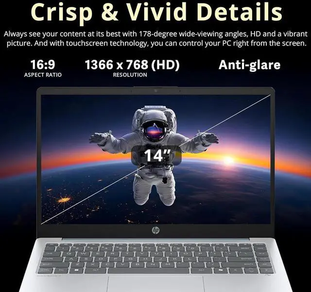 14" HD Display: Enjoy crisp visuals and a comfortable 14" HD display for work, study, and entertainment.