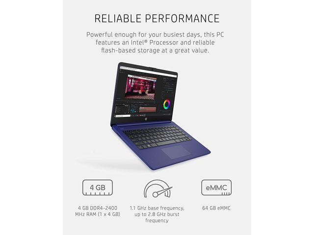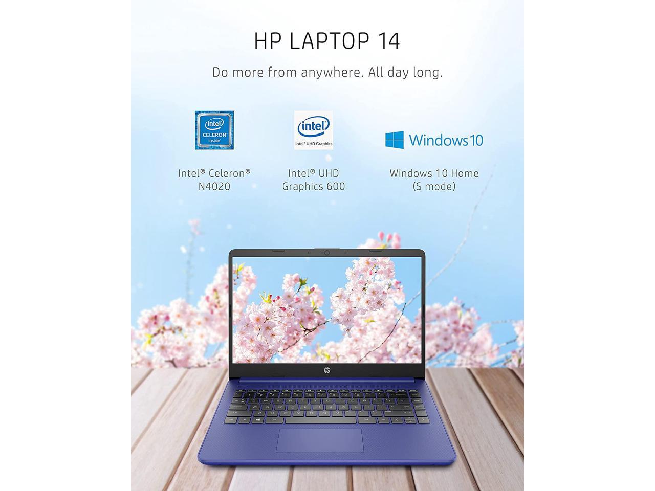 HP 14 Series 14" Laptop - Intel Celeron N4020 - 4GB RAM - 64GB eMMC - Windows 10 Home in S mode - Indigo Blue 14-dq0010nr (47X74UA#ABA)