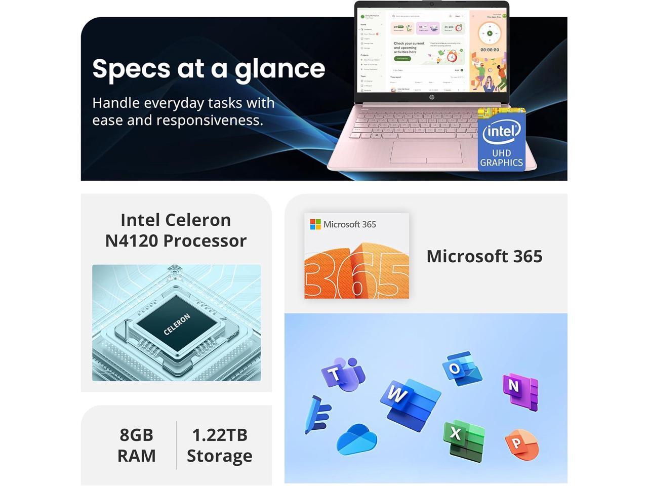 - Reliable Intel ProcessorEquipped with the Intel 4-Core N4120 processor, this HP laptop offers reliable and responsive performance. Transition effortlessly between tasks like studying, streaming entertainment, and browsing the internet without interruptions.