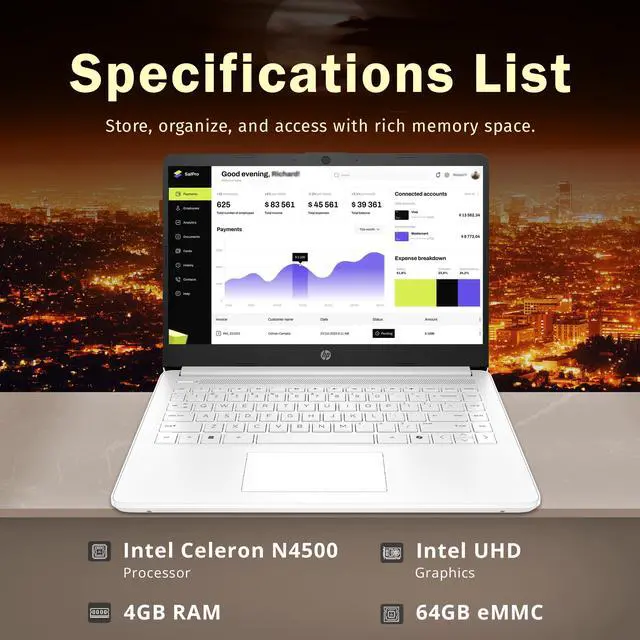 Powered by an Intel Celeron N4500 with Intel UHD Graphics, this HP 14" HD laptop offers reliable everyday performance with Copilot, a 720p HD camera, and Windows 11 S.