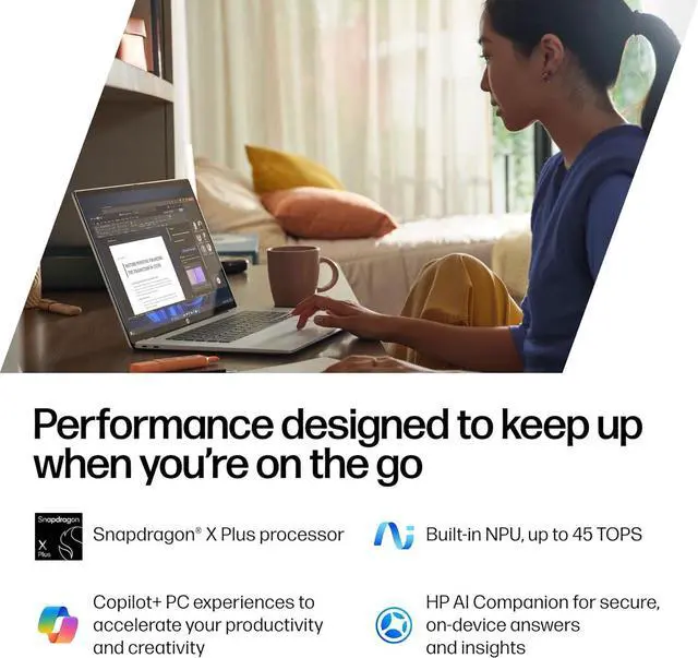 SNAPDRAGON X PLUS PROCESSOR - Achieve more everyday with responsive performance for seamless multitasking with AI tools that enhance productivity and connectivity while providing long battery life
