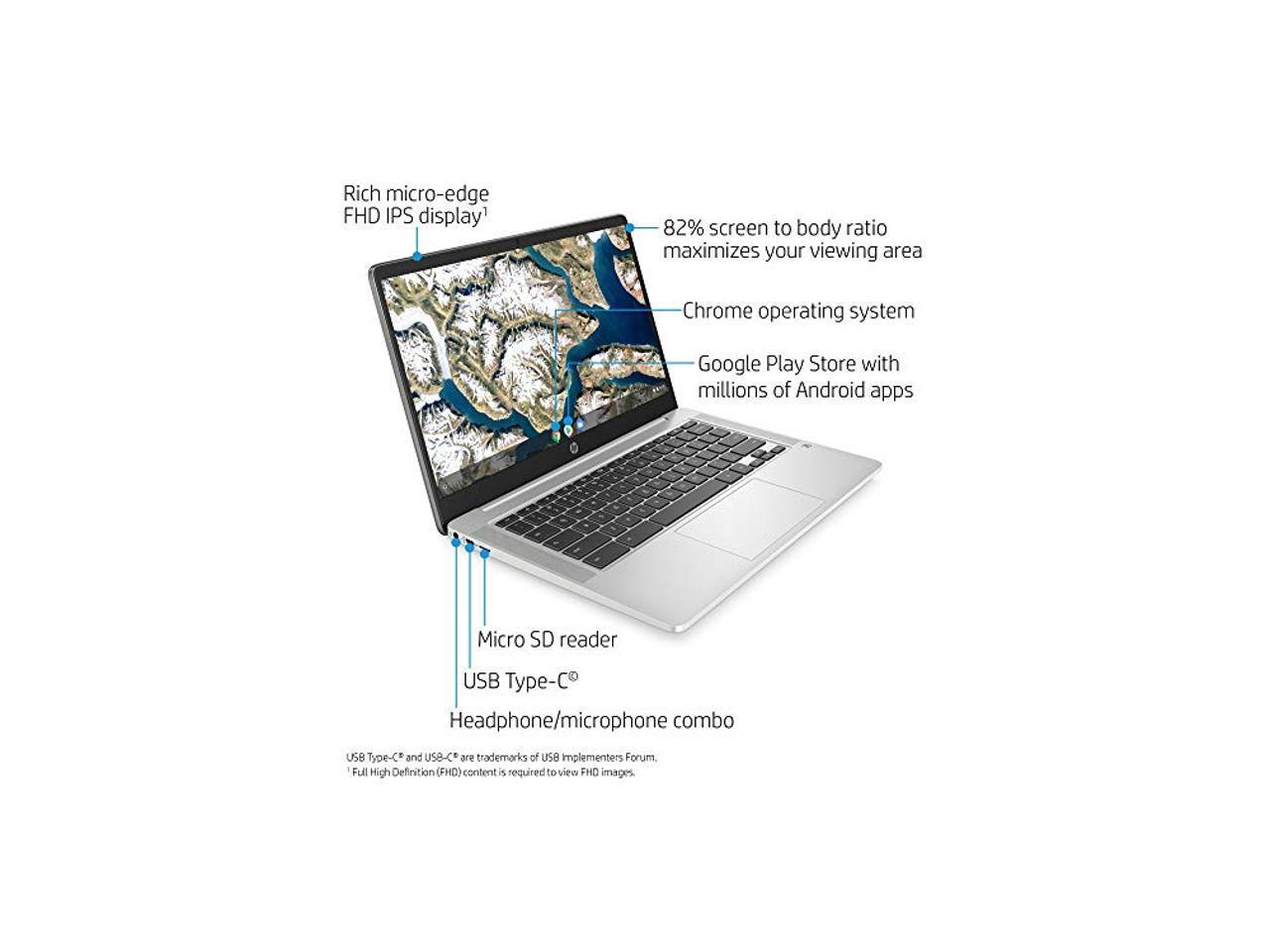 HP Chromebook 14-inch FHD Laptop, Intel Celeron N4000, 4 GB RAM, 32 GB eMMC, Chrome (14a-na0050nr, Mineral Silver)