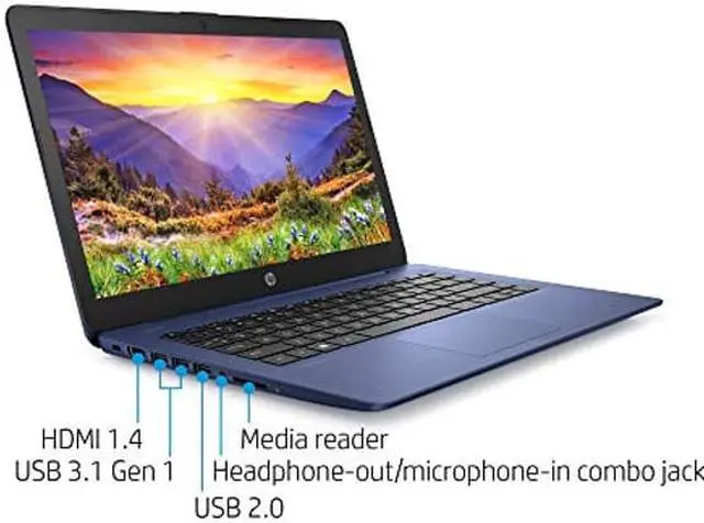 Specifications: Intel Celeron N4000 processor ( 1.1 GHz base frequency, up to 2.6 GHz burst frequency, 4 MB cache, 2 cores)4GB DDR4-2400 SDRAM (1 x 4 GB) Intel UHD Graphics 600 Integrated64GB eMMC storage 14-inch diagonal HD SVA BrightView micro-edge WLED-backlit (1366 x 768) Realtek 802.11 b/g/n/a/ac (2x2) and Bluetooth 4.2 comboIntegrated 10/100/1000 GbE LAN1 multi-format SD media card readerHP Webcam with integrated digital microphoneDual speakers2 USB 3.1 Gen 1 (Data transfer only); 1 USB 2.0; 1 HDMI 1.4; 1 headphone/microphone combo45 W Smart AC adapter3-cell, 41 Wh Li-ionWindows 10 Home in