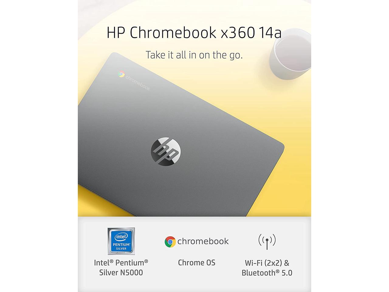 HP Chromebook x360 14a 2-in-1 Laptop, Intel Pentium Silver N5000 Processor, 4 GB RAM, 64 GB eMMC, 14" HD Display, Chrome OS with Webcam & Dual Mics, Work, Play, Long Battery Life (14a-ca0022nr, 2021)
