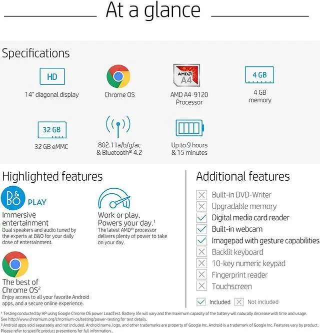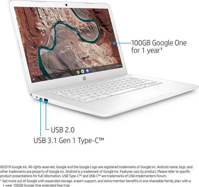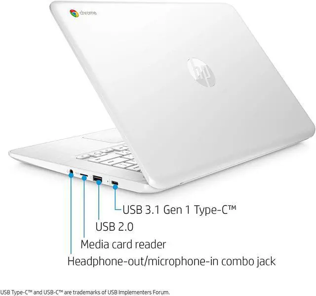 HP Chromebook 14-inch Laptop with 180-Degree Hinge, AMD Dual-Core A4-9120 Processor, 4 GB SDRAM, 32 GB eMMC Storage, Chrome OS (14-db0030nr, Snow White) (Renewed)