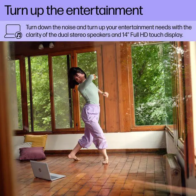 Its wireless connectivity and ample memory make multitasking a breeze, allowing you to switch between work tasks, personal projects, and entertainment with ease. Your favorite Google applications are just a click away, making it easier than ever to stay organized and efficient. Entertainment is a key feature of this laptop, with its 14-inch diagonal display and dual stereo speakers providing clear, immersive audio-visual experiences. The high-quality camera, equipped with temporal noise reduction and integrated dual array digital microphones, ensures crystal-clear video calls. A camera privacy shutter allows you to control when you're seen, ensuring your privacy is always respected.