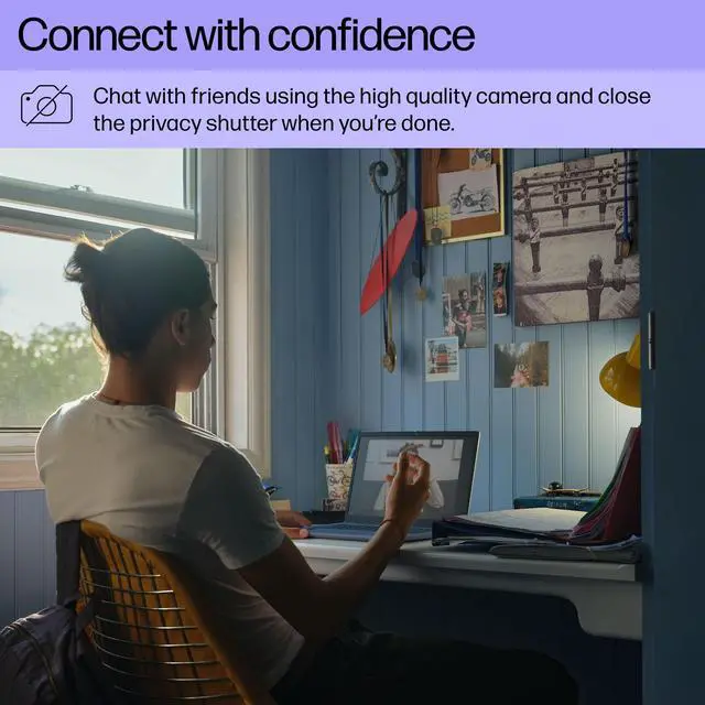 And without the moving parts of a traditional hard drive, there's a lower chance of failure and damage. Camera ShutterNo more unsightly tape and tacky gum to hide your private moments. Ensure your privacy and security with a visible, physical shutter that turns off your PC's camera when not in use. Dual speakersPump up the volume to your favorite music, movie or game with dual stereo speakers. USB Type-C Power + Display + 5Gbps signaling ratePower your device or connect to an external display from just one USB-C port with 5Gbps signaling rate.