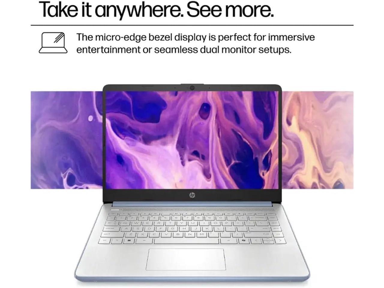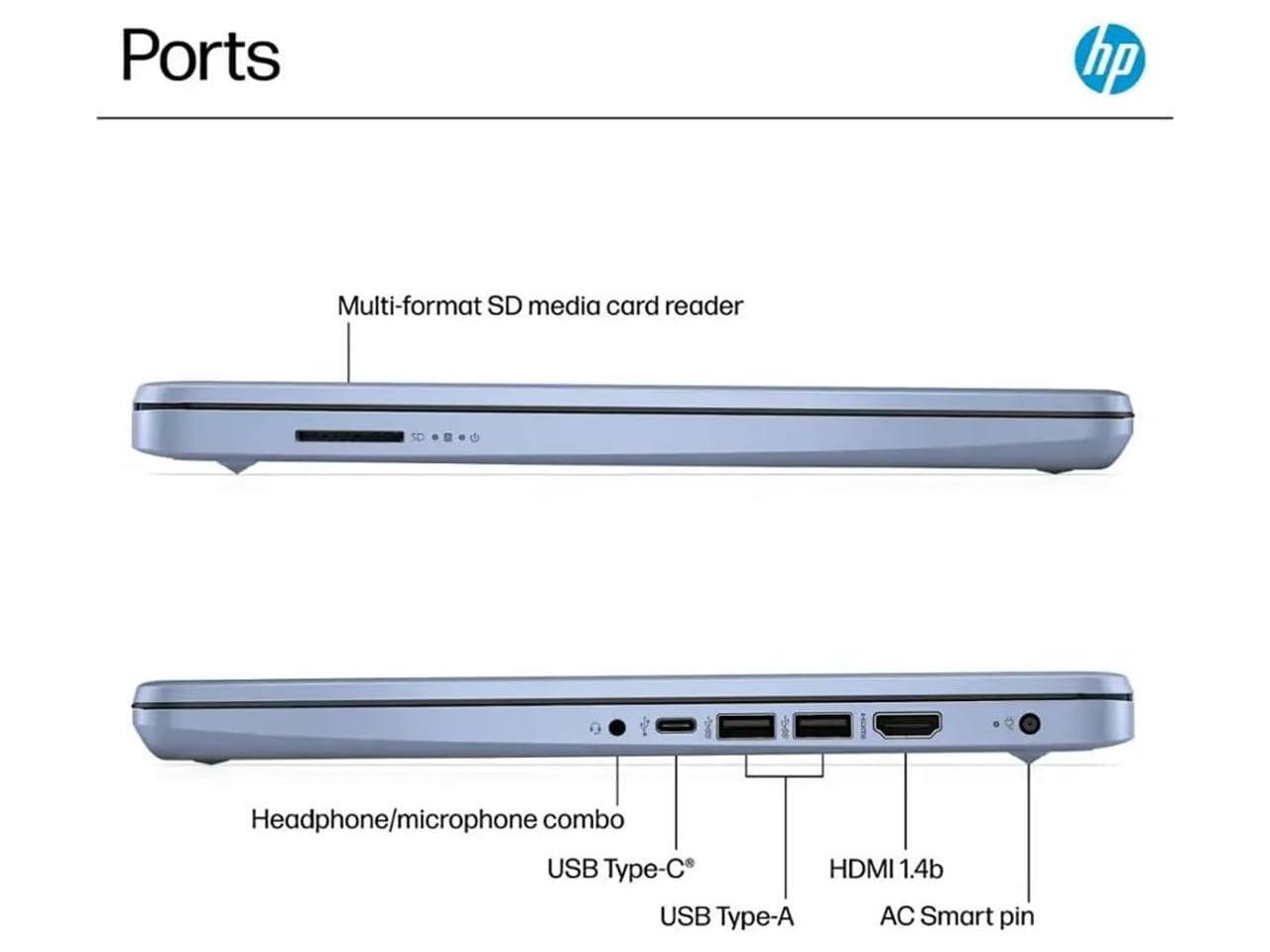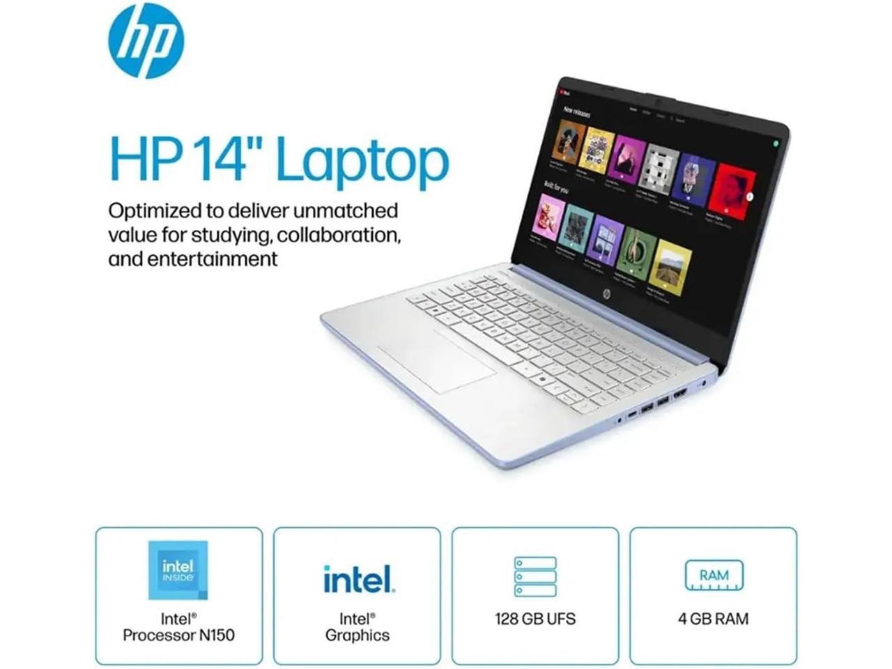 - The HP 14 features an Intel N150 processor, 4GB RAM, and a 256GB storage for efficient multitasking. Ample storage and processing power for everyday tasks.