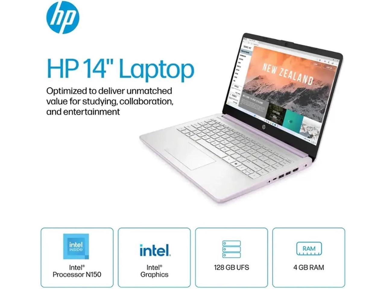 HP 14 Ultra-Light Laptop for Student & Home (14" LED Display, 1-Year Office 365, Intel 4-Core N150 (>N4120), 4GB RAM, 128GB Storage), Long Battery Life, Fast Charge, Webcam, Win 11 S, 2025, Lavender