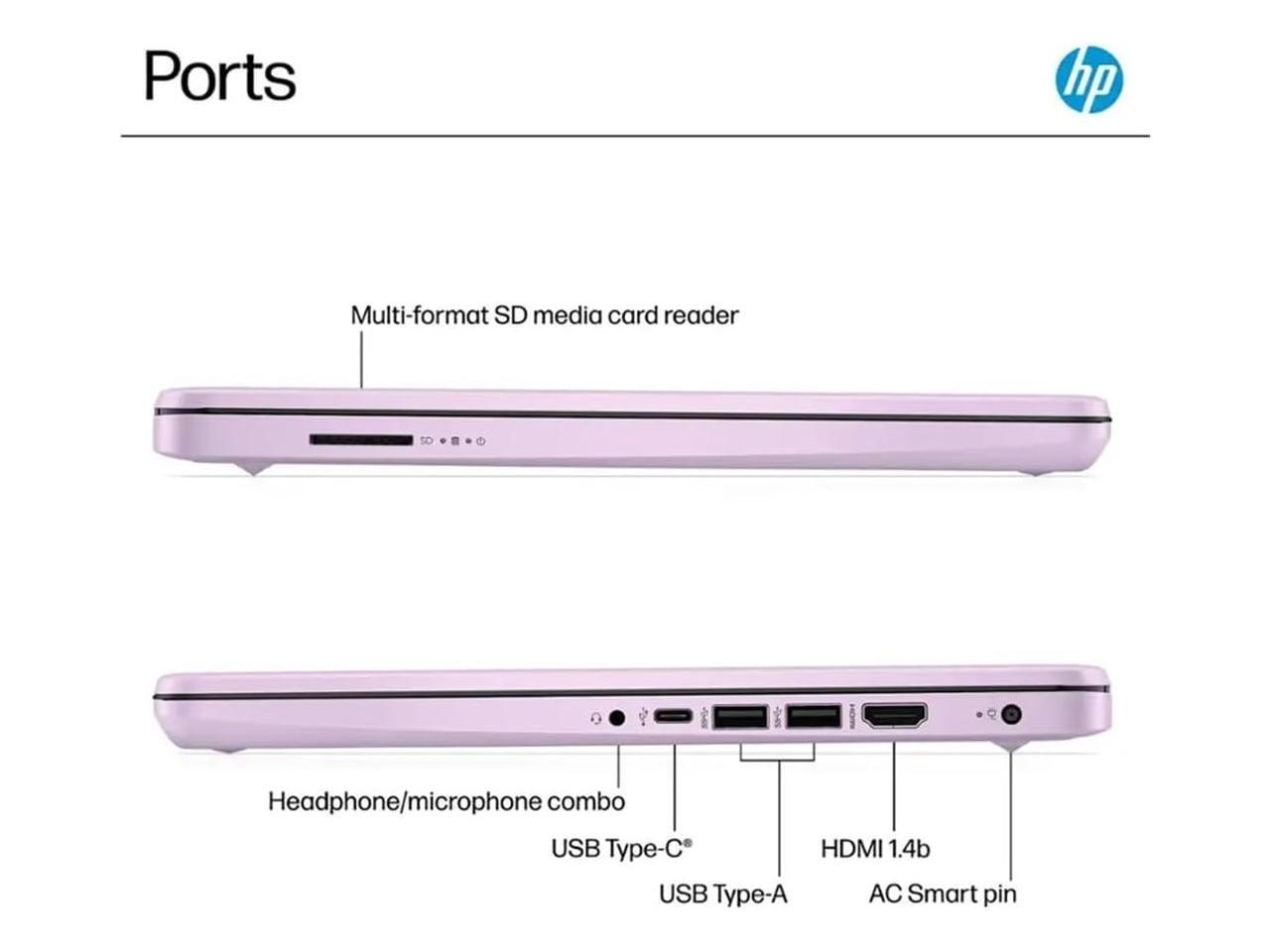 The HP 14 features an Intel N150 processor, 4GB RAM, and a 128GB SSD for efficient multitasking. Ample storage and processing power for everyday tasks.