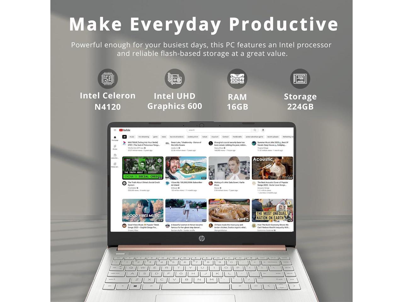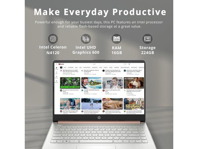 HP Stream 14" HD Lightweight Laptop, Intel Celeron N4120, 16GB RAM, 224GB Storage(64GB eMMC + 160GB Docking Station), Intel UHD Graphics, HD Webcam, 1 Year Office 365, WiFi, Bluetooth, Win 11s, Gold