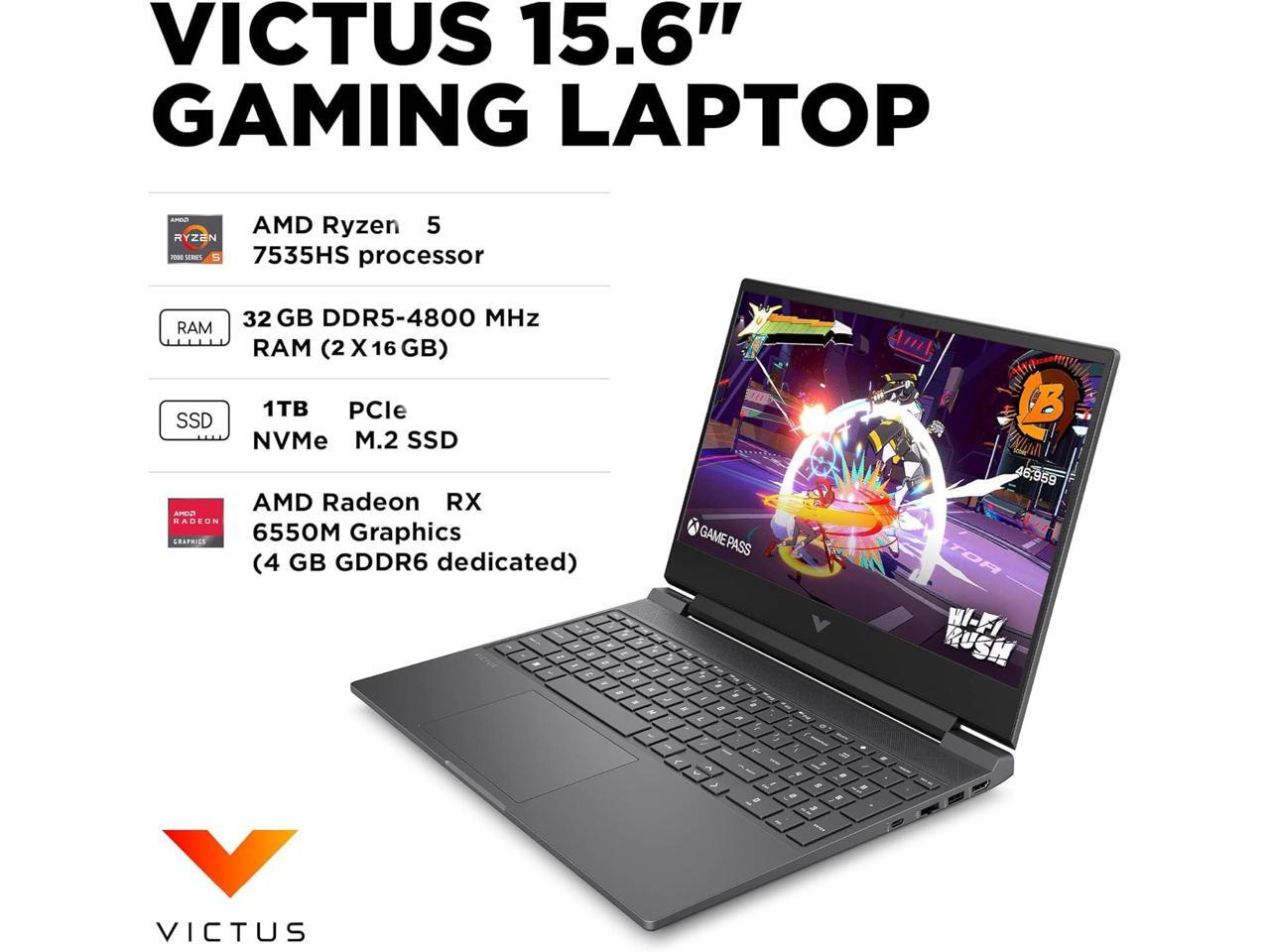 AMD Ryzen 5 7535HS (Hexa-cores, 12 threads, base clock speed 3.3GHz, max turbo to 4.55GHz, 16MB L3 Cache); AMD Radeon RX 6550M 4 GB GDDR6; 32GB (16GB x 2) DDR5 4800MHz RAM Memory; 1TB PCIe NVMe M.2 SSD